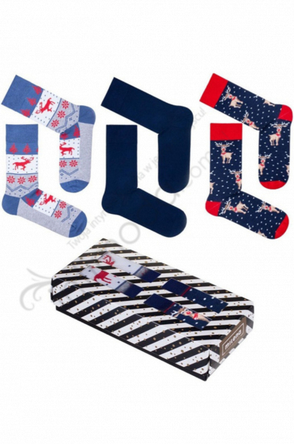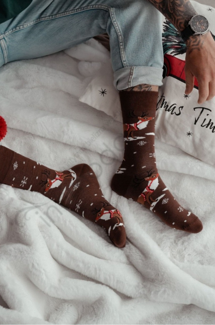 Milena Skarpetki Męskie Świąteczne Renifer Z Uprzężą 1290.035