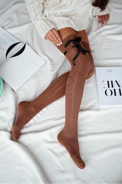 Milena Zakolanówki Ażurowe Warkocz Ze Wstążką 0835.001