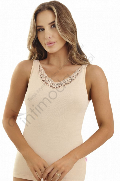 Koszulka bawełniana Eldar Catherine Plus beżowa | wąskie ramiączka