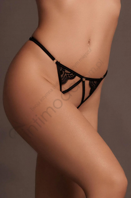 Le Désir Cloe - Thong with Open Crotch,Adjustable Sliders and Golden Details - One Size