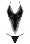 Seksowny komplecik składający się z topu oraz stringów. Zarówno top jak i stringi wykonane zostały z połączenia materiału "wetlook" oraz koronki.