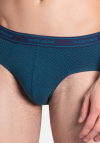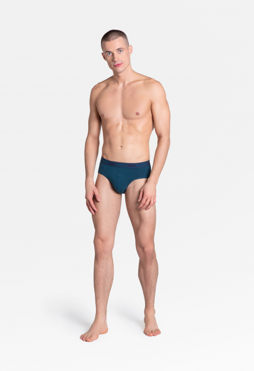 Wygodne, męskie slipy uszyte z ciemniejszej, miękkiej, wysoce komfortowej dzianiny bawełnianej. Linia Premium marki Henderson. Propozycja, ktĂłra nawiązuje do najświeższych trendĂłw bieliźnianej mody - subtelny, mozaikowy wzĂłr w połączeniu z niebanalną kolorystyką. W pasie guma z nadrukiem. Skład: 95% bawełna, 5% elastan.