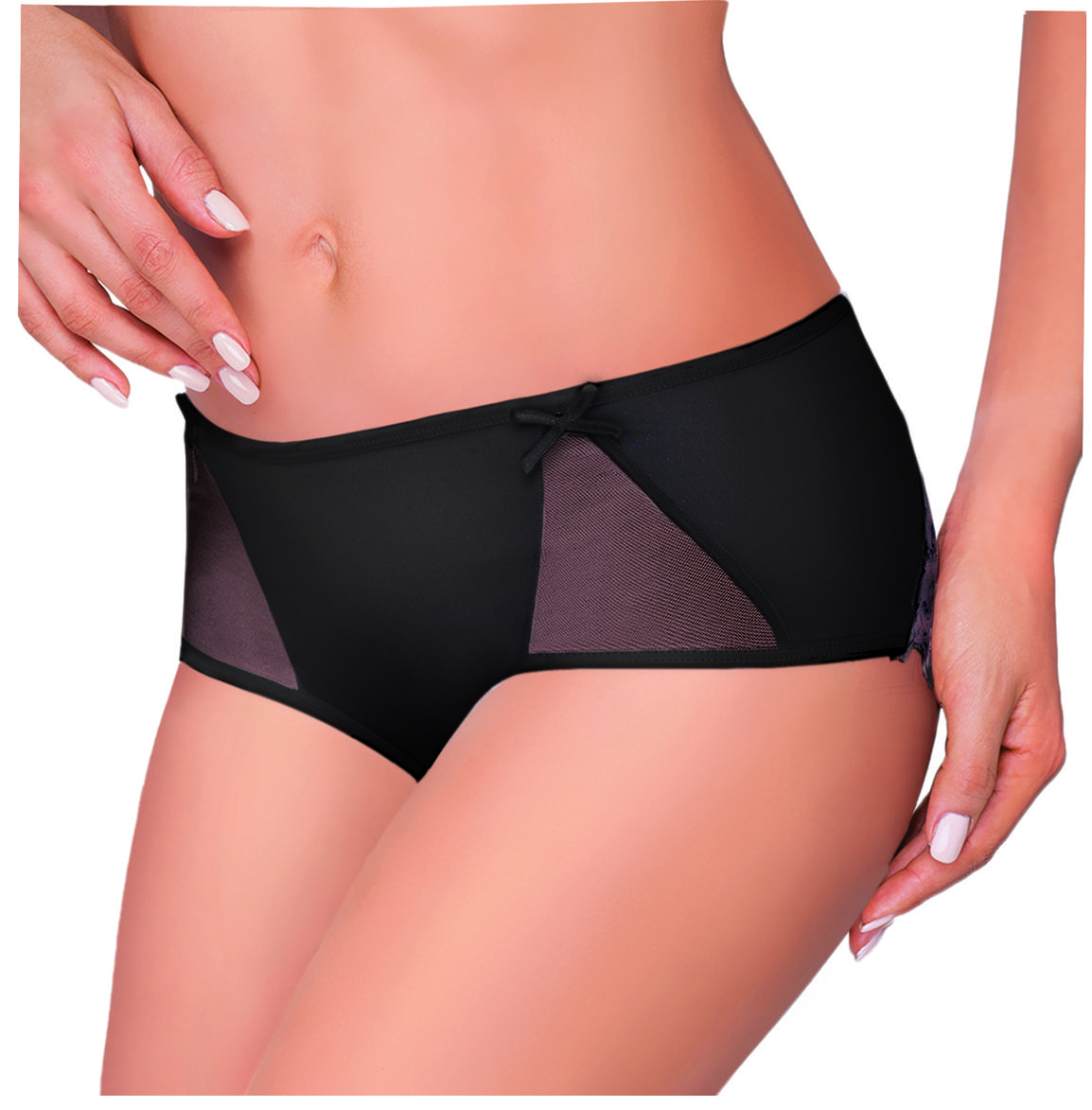 Urocza kompozycja - wygodne figi z pięknym, koronkowym tyłem. Lekko prześwitujące, pokryte haftowanymi rĂłżami. Skład: 85% poliester, 15% elastan.