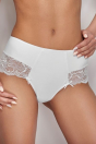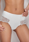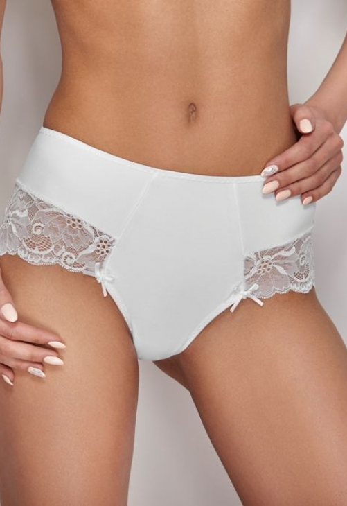 Bardzo kobiece figi z koronkowym tyłem. PrzĂłd zasadniczo gładki, jedynie przy udach pnie się stylowa, kwiecista koronka. Skład:  85% poliamid, 15% elastan.