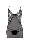 Piękna haleczka nocna ozdobiona ślicznym, ażurowym wzorem. Delikatna, miękka, uwodzi spojrzenie. Fason dopasowany do sylwetki, świetnie podkreśla kobiece kształty, a ukośnie zastosowany wzór optycznie wydobywa i akcentuje talię. Miseczki stylowo zdobią piersi. Plecy z głębokim dekoltem. Ramiączka efektowne, o regulowanej długości. W zestawie pasujące do kompletu stringi oraz zalotna wstążeczka na szyję. Bardzo elegancka i zmysłowa propozycja, która zdecydowanie będzie działać na Twoją korzyść.Wskazówki: sugerowane pranie ręczne w temp.max 30 stop. C., nie wirować, nie prasować, suszyć pionowo przez odcieknięcie, nie chlorować, nie bielić.