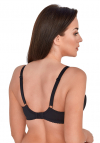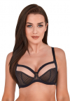 Biustonosz soft z fiszbiną, konstrukcja z zastosowaniem panelu bocznego dzieki czemu mamy pewność że biust zostanie doskonale zebrany do środka i pięknie się ukształtuje. Miseczki z podwójnej tkaniny - nie prześwituje, górna część wykonczona czarną płaską taśmą. Obwód wykonano z gładkiej tkaniny z dodatkiem lycry. Ramiączka regulowane, a ich szerokość dostosowana do rozmiaru biustu, tak aby nie uciskały i podnosiły komfort użytkowania biustonosza CLARA.