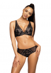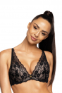 Niki seksowny biustonosz typu push-up w niezwykle kobiecym stylu. Model w całości wykonany z pięknej, kwiecistej koronki. Od środka miseczki posiadają podbicie koloru beżowego oraz kieszonkę na wkładki powiększające. Biustonosz naturalnie zbiera i unosi piersi. Ramiączka regulowane, nieodpinane. Biustonosz zapinany na dwurzędową haftkę z trzystopniową regulacją.