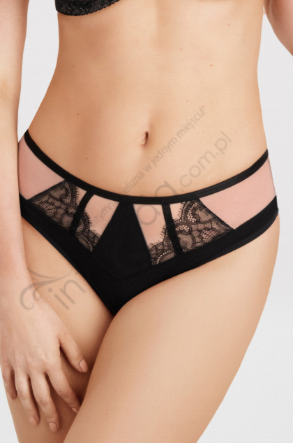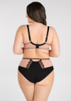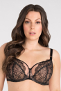 Biustonosz miękki przeznaczony dla kobiet ze średnim, dużym oraz bardzo dużym biustem Zapewnia efekt uniesienia i zebrania biustu do środka 3-częściowe miski wykonane ze stabilnej koronki z rzęskami oraz cielistego tiulu stabilnego Górna krawędź miski wykończona delikatnie połyskującą taśmą, płynnie przechodzi do ramiączka powodując lepsze podtrzymanie biustu Tył z transparentnej lycry zapewniającej bardzo dobre dopasowanie i podtrzymanie Fiszbiny boczne zapobiegające zwijaniu się materiału W zależności od rozmiaru dwu lub trzyrzędowa haftka z trójstopniową regulacją obwodu Nieodpinane, regulowane ramiączka w czterech szerokościach Metalowe elementy w kolorze różowego złota