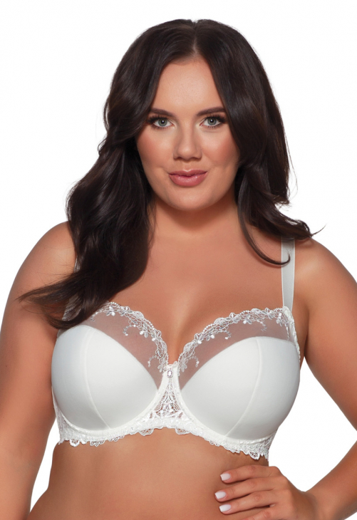 Najnowsza odsłona kultowego modelu AV 1030 zwraca uwagę nietypową barwą słodkiej śmietanki. Bestsellerowa konstrukcja idealnie dopasowuje się do każdego rodzaju biustu, unosi i podtrzymuje piersi, zapewniając im maksimum komfortu. Biustonosz wykonany został z miękkiej pianki pokrytej elastyczną dzianiną w dolnej części miski oraz pięknego haftu w górnych partiach. Mostek obszyty koronką z kwiatowym motywem oraz plecy z elastycznej mikrofibry świetnie utrzymują biustonosz w odpowiedniej pozycji.