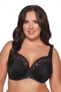Bestsellerowa konstrukcja 1030! Miseczki wyścielone zostały w dolnych partiach miękką pianką, którą od zewnątrz pokryto elastyczną dzianiną. Górną część miseczek tworzy zaś gęsto tkana florystyczna koronka, która gładko przylega do kształtu piersi i stopniowo pnie się po ramiączku. Ozdobny mostek i sprężysty obwód rozświetlone zostały metalową blaszką z logotypem, umieszczoną nie tylko w centralnym punkcie między piersiami, ale także z tyłu przy zapięciu.