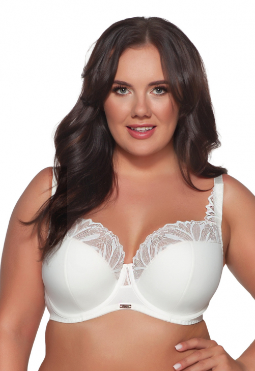 Bestsellerowa konstrukcja 1030! Miseczki wyścielone zostały w dolnych partiach miękką pianką, którą od zewnątrz pokryto elastyczną dzianiną. Górną część miseczek tworzy zaś gęsto tkana florystyczna koronka, która gładko przylega do kształtu piersi i stopniowo pnie się po ramiączku. Ozdobny mostek i sprężysty obwód rozświetlone zostały metalową blaszką z logotypem, umieszczoną nie tylko w centralnym punkcie między piersiami, ale także z tyłu przy zapięciu.