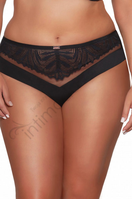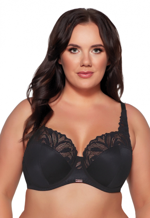 Biustonosz miękki, miseczki wykonane ze spójnego połączenia simplexu i gustownej koronki stabilnie podtrzymują piersi, zbierając je przy tym ku sobie, co czyni dekolt niezwykle powabnym i apetycznym. Umieszczone na mostku i przy zapięciu logowane blaszki rozświetlają jednokolorową Yasemin, dodając jej niewymuszonej elegancji.