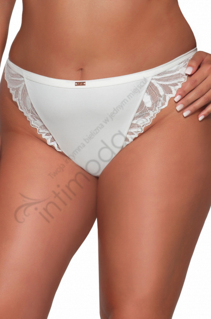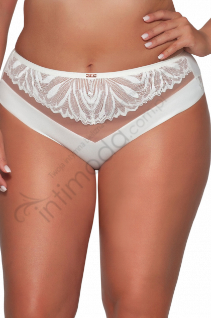 Biustonosz miękki, miseczki wykonane ze spójnego połączenia simplexu i gustownej koronki stabilnie podtrzymują piersi, zbierając je przy tym ku sobie, co czyni dekolt niezwykle powabnym i apetycznym. Umieszczone na mostku i przy zapięciu logowane blaszki rozświetlają jednokolorową Yasemin, dodając jej niewymuszonej elegancji.