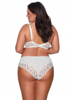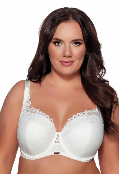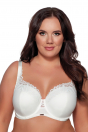 Biustonosz usztywniony, miseczki utrzymują piersi w swoich ryzach, zbierając je spod pach i solidnie podtrzymując. Dzięki elastycznemu obwodowi i dopasowanym ramiączkom biustonosz utrzymany jest stabilnie w odpowiednim miejscu, nie nadwrężając przy tym pleców i ramion. Koronka utrzymana w roślinnym motywie urokliwie wykańcza miseczki, pnąc się po ramiączku ku górze i prześwitując zalotnie w mostku, a metalowe logotypy AVA ulokowane z przodu i z tyłu dodają Yasemin odrobiny blasku.