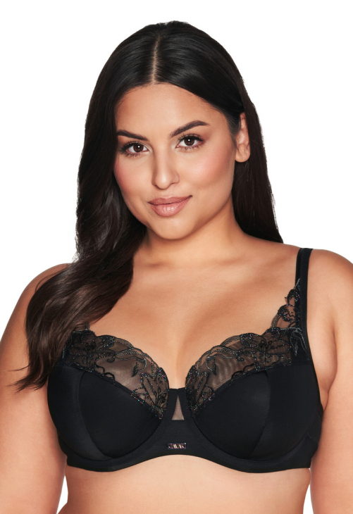 Półusztywniane miseczki od wewnątrz wyścielone zostały miękką pianką dla optymalnego kształtowania piersi, na zewnątrz zaś pokrywa je czarny tiul oraz niebanalny kwiatowy haft uzupełniony o energetyczne błyski. Bogato haftowane wstawki rozpięte między ramiączkiem a miseczką dodają modelowi lekkości i uroku. Bestsellerowa konstrukcja należycie zadba o zebranie i uniesienie biustu, a także o jego komfortowe podtrzymanie, a fikuśne figi świetnie uzupełnią całość. Zakochaj się w iskrzącej Tropei!