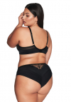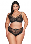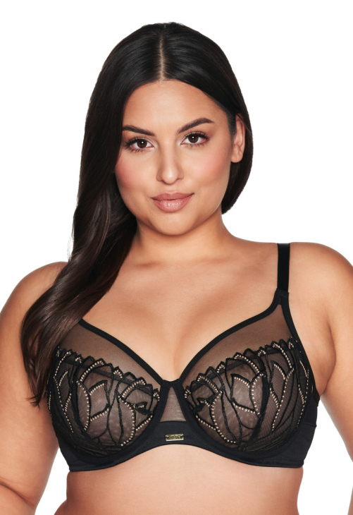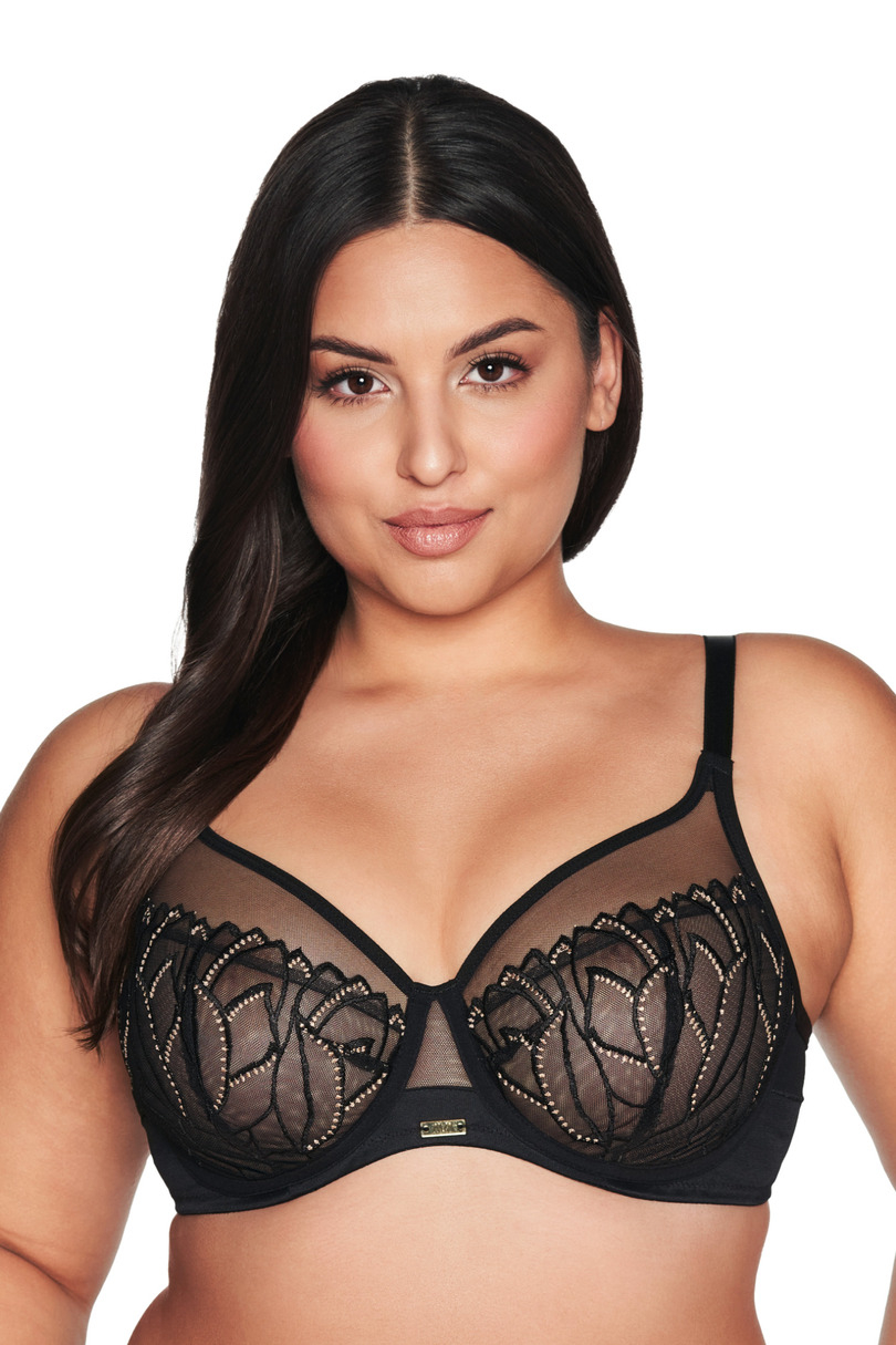 Odkryj niezwykłą magię modelu AV 2115 - biustonosza soft o konstrukcji K-1396, gdzie elegancja spotyka się z zmysłowym designem. Rozświetlona złotem, ta zmysłowa czerń, osadzona na transparentnym tiulu, tworzy niepowtarzalny motyw, który sprawia, że każda kobieta może poczuć się jak królowa zmysłów. Ramiączka tego biustonosza są nieodpinane, regulowane za pomocą metalowego, antyalergicznego regulatora, co pozwala na idealne dopasowanie do Twojej sylwetki. Dwurzędowa, trójstopniowa haftka zapewnia stabilność i komfort noszenia, sprawiając, że każdy dzień staje się wyjątkowy. Finezyjne płomienie haftu, pnące się ku górze, dodają subtelności i powabu miękkim miseczkom, delikatnie modelując piersi. Czarne tiulem osłonięty mostek oraz górne partie misek pobudzają wyobraźnię, tworząc efektowne połączenie transparentności i elegancji. Zmysłowość tego modelu nie kończy się na biustonoszu - dołącz do niego figi lub brazyliany, które równie kusząco podkreślą krągłości kobiecego ciała. Skomponuj kompletny zestaw, który pozwoli Ci poczuć się niezwykle kobieco i pewnie siebie.