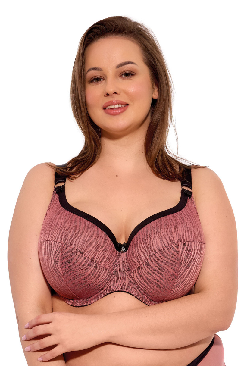 Biustonosz typu semi-soft w doskonałej konstrukcji nieco bardziej zabudowanej. Konstrukcję tą znamy z biustonosza SONIA 1058, miękka część miseczki wysoko wyciągnieta do ramienia płynnie przechodzi w ramiączko, którego szerokość jest dostosowana do rozmiaru biustonosza. Model ten mocno zbiera piersi i nadaje im okrągły kształt. Doskonały na duże piersi.