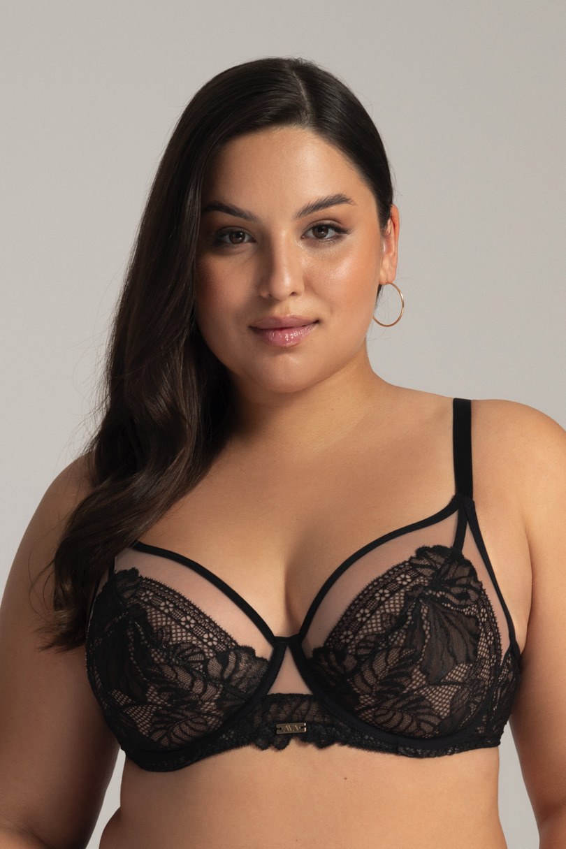 Biustonosz miękki, konstrukcja K-2103 Model AV 2146 HARMONY SOFT BRALETTE to idealne połączenie komfortu i zmysłowego designu. Czarna koronka na cielistym tiulu tworzy elegancki kontrast, który podkreśla piękno biustu. Miękkie miseczki typu bralette delikatnie otulają piersi, zapewniając wygodę i swobodę ruchów. Prześwity w górnych partiach miseczek dodają nuty tajemniczości, a seksownie podkreślony mostek wzmacnia uwodzicielski charakter modelu. Harmony zachwyca nie tylko krojem, ale także finezją ażuru, tworząc efektowną i jednocześnie wygodną bieliznę na każdą okazję. Skład surowcowy: 88% Poliamid, 8% Bawełna, 4% Elastan.