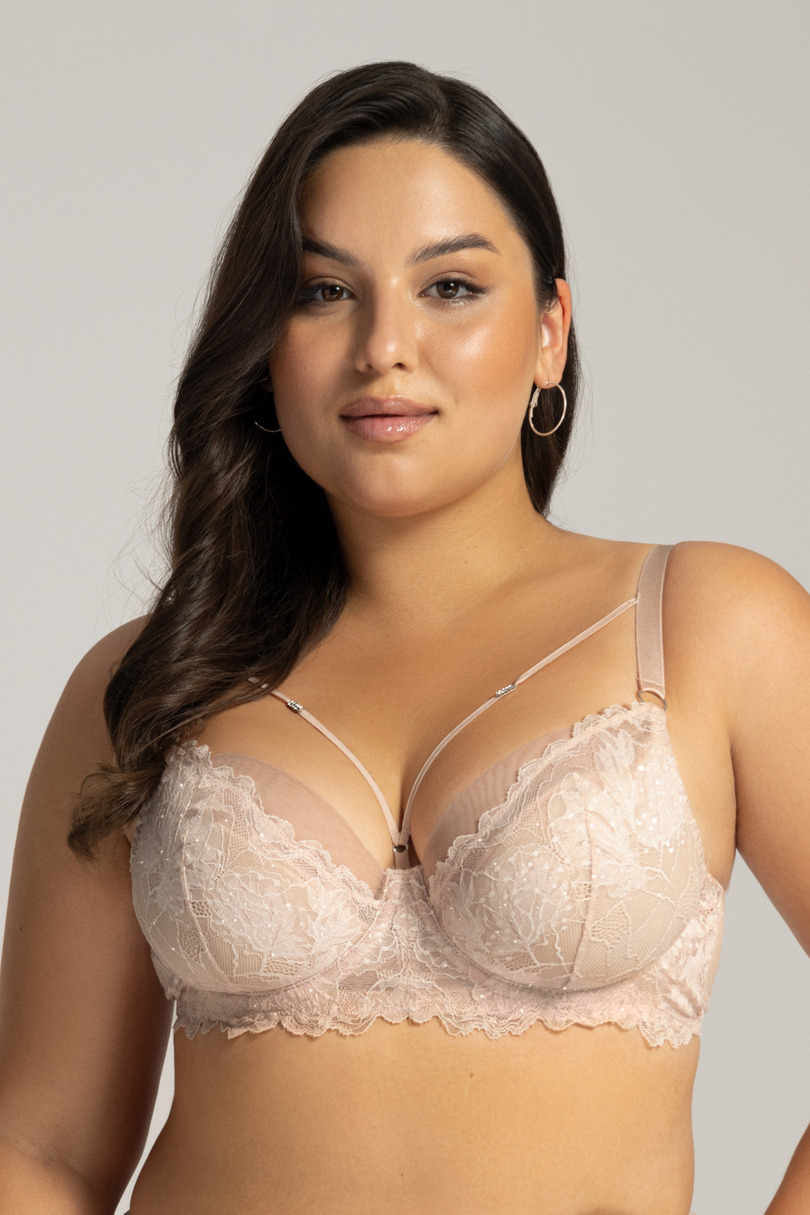 Biustonosz półusztywniony, konstrukcja K-925 AV 2154 Fiesta Semi Soft – zachwycający półusztywniany biustonosz, który łączy w sobie elegancję i komfort. Miseczki, wyścielone od dołu miękką pianką, zapewniają stabilne podtrzymanie, a ich górna część z cielistego tiulu stapia się ze skórą, tworząc efekt delikatnej przezroczystości. Zarówno miseczki, jak i bawet pokryte są bladoróżową koronką o srebrzystym połysku, która wdzięcznie podkreśla urok kobiecego ciała. Odpinane paseczki z cyrkoniami dodają biustonoszowi odrobiny blasku i pozwalają na indywidualne dopasowanie stylu. Koronkowy bawet subtelnie odciąża całość, nadając modelowi lekkości i wdzięku. Viva la Fiesta!