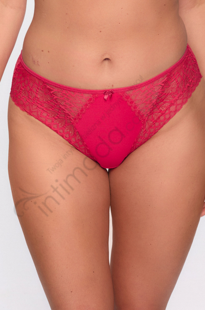 Półusztywniany model Clementine o bardzo pięknym koralowym kolorze. Model łączy w sobie klasyczną konstrukcję SS3 i nowoczesny design. Górna część miseczki z delikatnego tiulu obszytego taśmą. Dolna, usztywniana część miseczki pokryta elastyczną koralową koronką. Plecy odcinane z grubej mikrofibry.