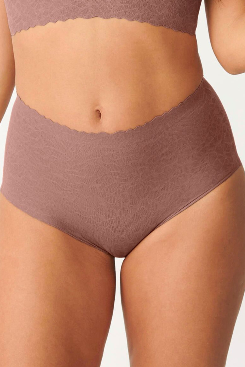 Figi z wysokim stanem sloggi ZERO FEEL LACE z szerszą partią boczną.Bezszwowe wykończenie w pasie z finezyjnie wyciętymi brzegami.W pełni bezszwowe wykończenie.Nie odznaczają się pod obcisłym ubraniem. Skład: 55% Poliamid, 45% Elastan