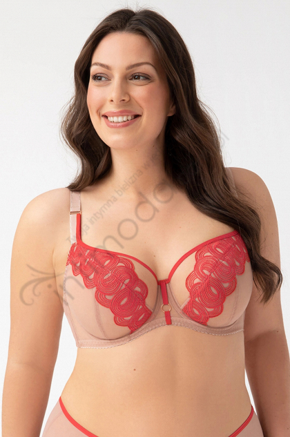 BRAZYLIANY: niższy stan, bardziej odsłaniają i uwydatniają pośladki. PRZÓD: tiul stabilny + haft + ozdobny paseczek z kółeczkiem, na bokach tiul elastyczny, dolna część z tiulu elastycznego podszytego bawełną, nogawki wykończone wąską taśmą elastyczną TYŁ: nogawki w złożeniu na gładko z tiulu elastycznego Pas wykończony szerszą taśmą elastyczną w kontrastowym kolorze. Skład: 90% poliamid, 7% elastan, 3% poliester