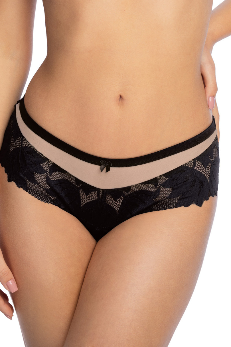 Klasyczne figi wykonane z koronki i mikrofibry Skład: 76% Poliamid, 19% Elastan, 5% Bawełna