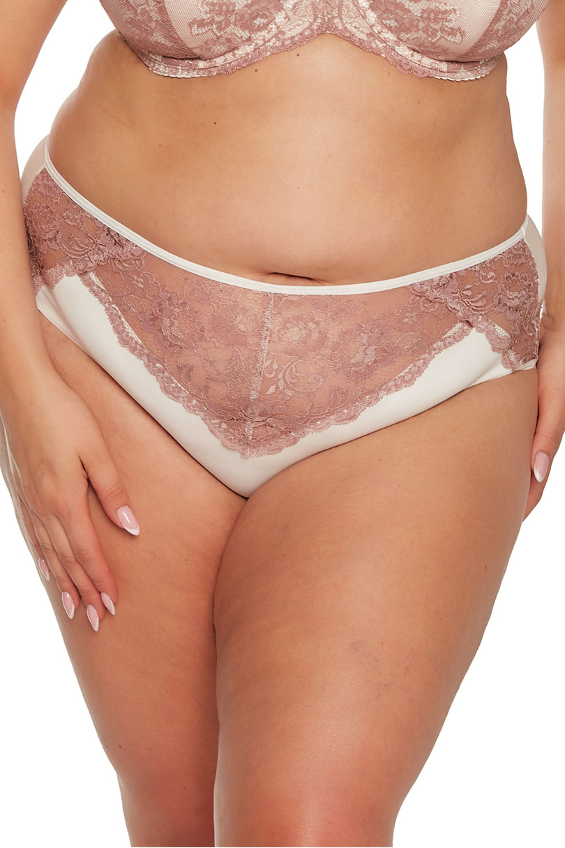 Skład: 76% Poliamid, 14% Elastan, 10% Bawełna Pełne figi wykonane z delikatnego tiulu zdobione zarówno z przodu jak i z tyłu różową koronką.