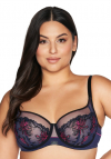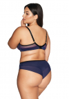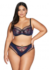 Biustonosz AV 2120 to wyjątkowy model, który połączenie miękkości z wsparciem bocznym perfekcyjnie podkreśla piękno kobiecych krągłości. Oznaczony jako "soft side support" z konstrukcją K-1130 SSS, ten biustonosz to gwarancja nie tylko estetyki, ale także doskonałego podtrzymania. Miękkie miseczki zostały wykonane ze stabilnego tiulu, ozdobionego nietuzinkowym kwiatowym haftem utrzymanym w wyrazistej kolorystyce. Głęboki odcień granatu nadaje całości zniewalający efekt. Ozdobny mostek i dwudzielne, elastyczne plecy, wzbogacone o ozdobny szew, doskonale dopasowują się do sylwetki, zapewniając nie tylko piękno, ale także wygodę noszenia. Ramiączka, nieodpinane, o szerokości dopasowanej do rozmiaru, są regulowane za pomocą metalowych, antyalergicznych regulatorów. Dwurzędowe/trzyrzędowe, trzystopniowe haftki na plecach ułatwiają dopasowanie do indywidualnych preferencji, a brak fiszbin bocznych dodatkowo zwiększa komfort noszenia. Biustonosz AV 2120 to nie tylko element garderoby, ale także doświadczenie komfortu i elegancji. Poczuj Mistral na własnej skórze, delektując się niezwykłym pięknem i wygodą tego wyjątkowego modelu.