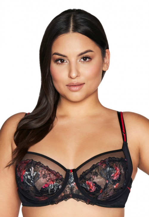 Biustonosz Intense to czarodziejski model, który zachwyca nasyceniem pozytywnych doznań. Oznaczony jako "soft side support" z konstrukcją K-1130 SSS, ten biustonosz łączy w sobie komfort, wsparcie boczne i wyjątkowy design. Miękkie miseczki ze stabilnym panelem bocznym fantastycznie zbierają piersi spod pach ku sobie, naturalnie je zaokrąglając. Subtelny kwiatowy haft oplata biust od spodu, pnąc się ku górze misek, które zostały wykończone czarnym tiulem i lamówką. Ozdobny bawet zwieńczony charakterną kokardką w centralnym punkcie nadaje biustonoszowi lekkości, a czerwone paseczki z błyszczącym kółkiem ulokowane na ramiączkach przyciągają wzrok. Dwudzielne plecy wykonane z elastycznej dzianiny i tiulu, połączone płaskim kolorowym szwem, należycie stabilizują biustonosz, utrzymując go w odpowiednim miejscu. Ramiączka, nieodpinane, o szerokości dopasowanej do rozmiaru, są regulowane za pomocą metalowych, antyalergicznych regulatorów. Zapięcie dwurzędowe/trzyrzędowe, trzystopniowe haftki na plecach ułatwiają dopasowanie do indywidualnych preferencji. Intense to nie tylko biustonosz, to doświadczenie komfortu, wsparcia i wyjątkowego stylu. Poczuj się czarodziejsko nosząc ten wyjątkowy model bielizny.