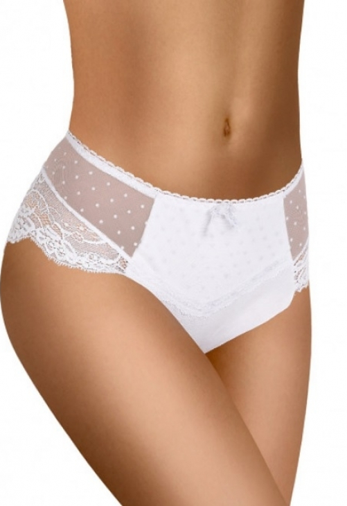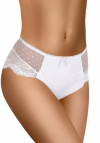 Figi damskie wykonane z wysokiej jakości efektownej koronki. Pas ozdobiony satynową kokardką. Tył koronkowy. Skład: 85% poliamid, 15% elastan.