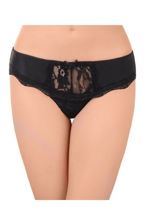 Eleganckie figi damskie. Materiał połyskujący na wysokości bioder koronkowa wstawka. Na środku przodu delikatna kokardka. Skład: 85% poliamid, 15% elastan.