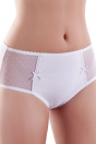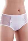 Figi damskie z wysokiej jakości, wzorzystej mikrofibry w połączeniu z elastyczną siateczką w kropki. Przód zdobią wstawki delikatnej koronkowej tasiemki.