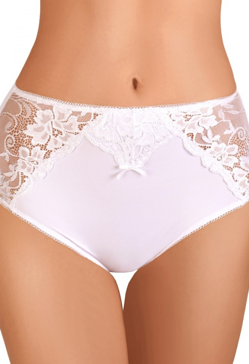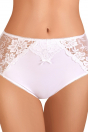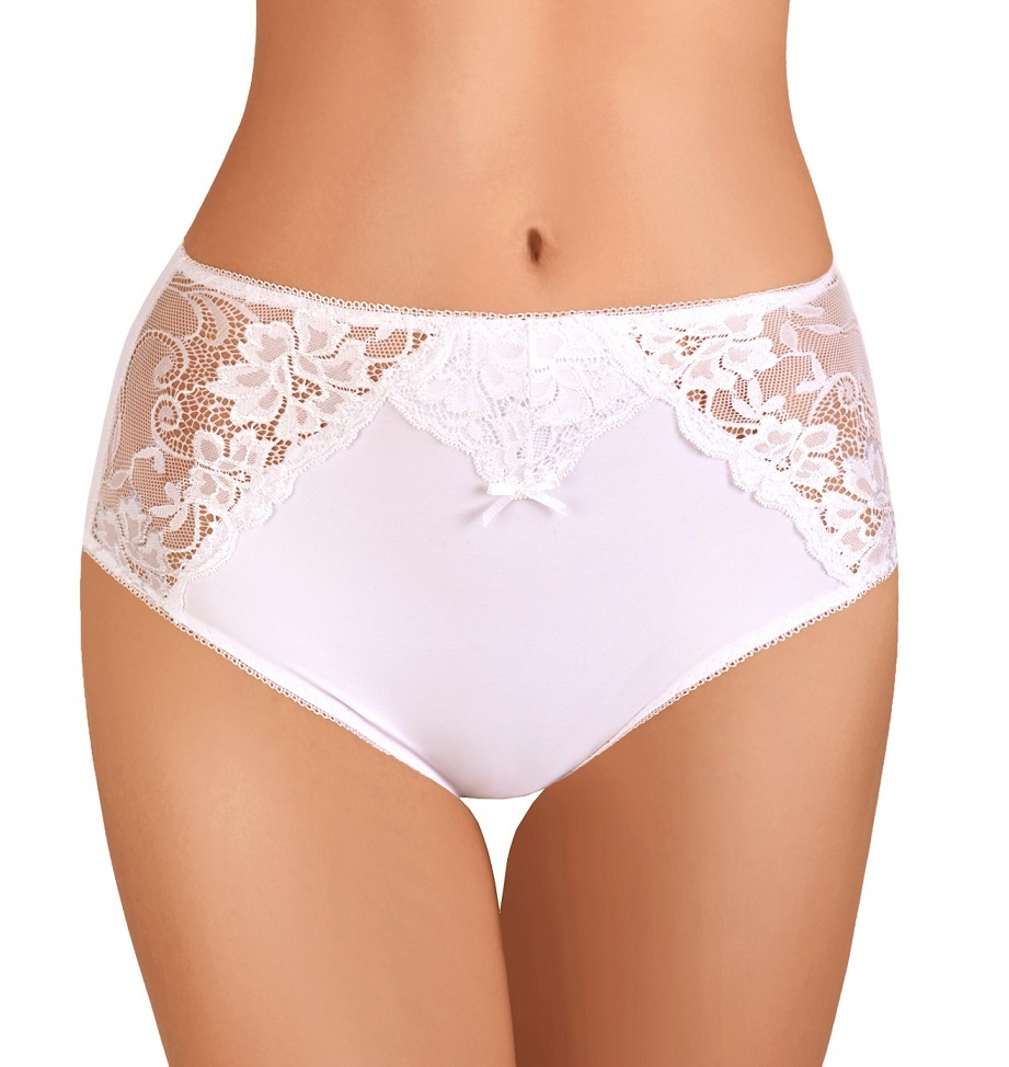 Wysokie figi damskie, zabudowane na biodrach. Wykonane z wysokiej jakości mikrofibry. Pas i biodra wykonane z efektownej, ażurowej koronki o kwiatowym motywie. Skład: 85% poliamid, 15% elastan.