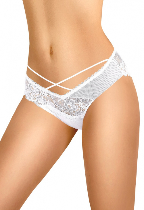 Figi damskie z koronkowymi wstawkami. Idealne pod letnie, zwiewne kreacje. Model dostępny w dwóch klasycznych wersjach kolorystycznych. Skład: 85% poliamid, 15% elastan.