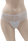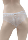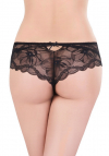 Stringoszorty damskie uszyte z efektownej, kwiatowej koronki. Z tyłu rozcięcie w kształcie trójkąta ozdobione satynową kokardką. Skład: 85% poliamid, 15% elastan.