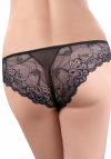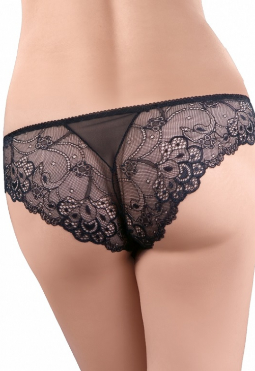 Figi z delikatnej mikrofibry w połączeniu z efektowną koronką o kwiatowym motywie.