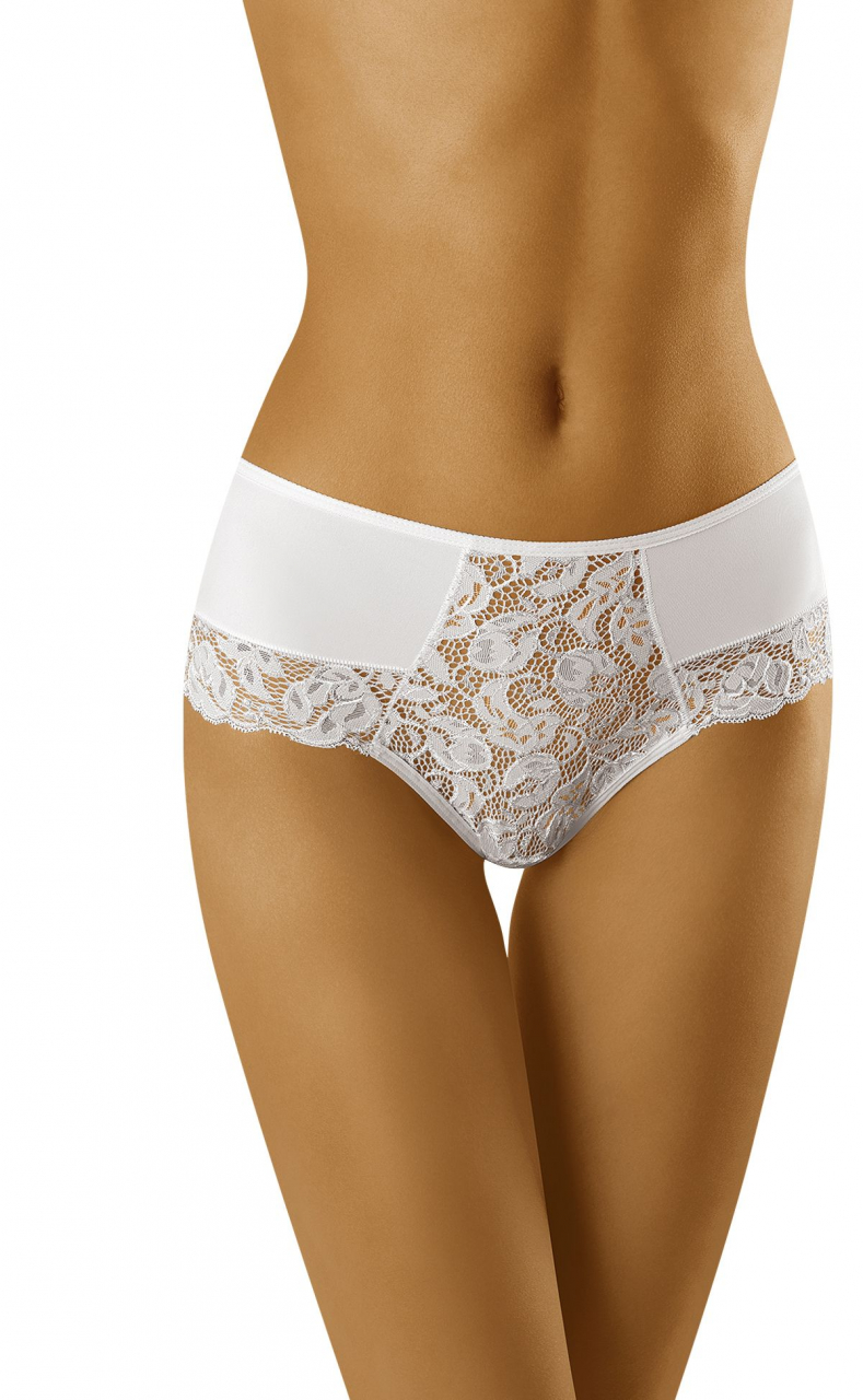 Ciekawe figi, które odróżniają się od innych. Najciekawszy akcent znajduje się z tyłu - bieliznę ozdobiono bowiem w tym miejscu kokieteryjnym, ozdobnym sznurowaniem z satynowej tasiemki. Koronkowa lamówka zdobi zarówno okolice ud, jak i większość przodu bielizny, dzięki czemu figi prezentują się niesamowicie kobieco. Skład: 83% poliamid, 17% elastan.