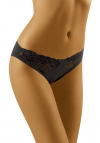 Niskie biodrówki, dzięki którym biodra wyglądają sexy. Śliczną, satynową kokardkę z przodu bielizny czarująco dopełniają koronkowe wstawki, tworząc wspólnie niebanalny duet. Tył gładki. Skład: 83% poliamid, 17% elastan.