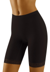 Dopasowane do ciała figi typu bermudy, które zabezpieczą skórę przed podrażnieniem czy otarciami. Lekko modelują ciało. Nogawki zaakcentowane delikatną koronką. Skład: 95% mikromodal, 5% elastan.