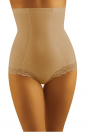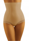 Wysokie, pełne figi korygujące, mocno wyszczuplające. Wykończone taśmą silikonową, by zapewnić lepsze trzymanie w górnej partii bielizny. Tuż przy udach koronka. Ukryte pod ubraniem pozwolą wyrzeźbić wymarzoną sylwetkę. Warto mieć je w swojej garderobie.