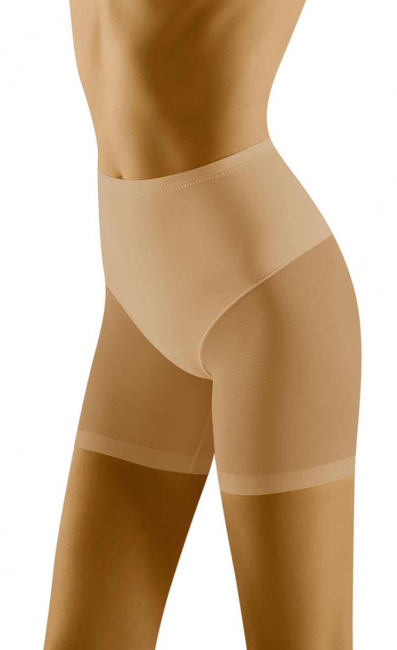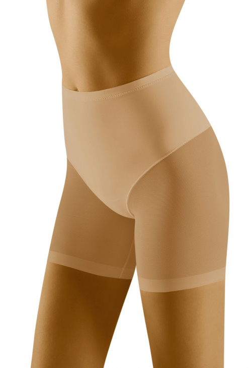 Jedne z najlepszych, funkcyjnych fig od Wol-Bar - model Relaxa. To bielizna, która jednocześnie wpływa na poprawę kształtu sylwetki w rejonie brzucha i bioder oraz chroni skórę przed otarciami w rejonie ud. Zastosowana na udach "siateczka" jest delikatna, płasko wykończona (dzięki czemu bielizna jest właściwie niewidoczna pod ubraniem) i niesamowicie przemyślana - zapewnia skórze doskonałą cyrkulację powietrza. Skład: 58% poliamid, 42% elastan.