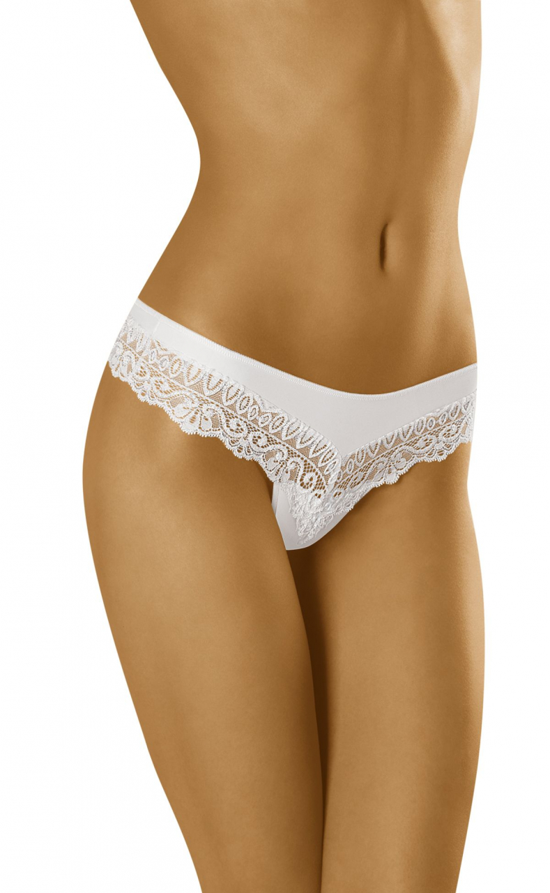Zmysłowe, niskie stringi wykończone efektowną koronką na brzegach. Krój, który pięknie podkreśla pośladki i nadaje sylwetce wyjątkowo ponętnych rysów. Skład: 83% poliamid, 17% elastan.