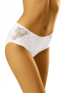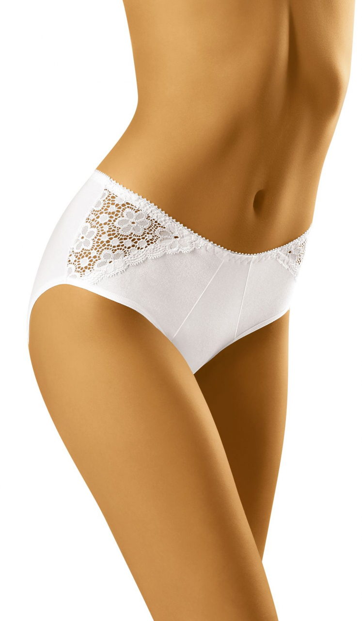 Wyższe, klasyczne figi lekko modelujące linię bioder. Wykonane z wysokiej jakości dzianiny bawełnianej. Boki uzupełnione wstawkami z kwiecistej koronki. Skład: 90% bawełna, 7% elastan, 3% poliamid.