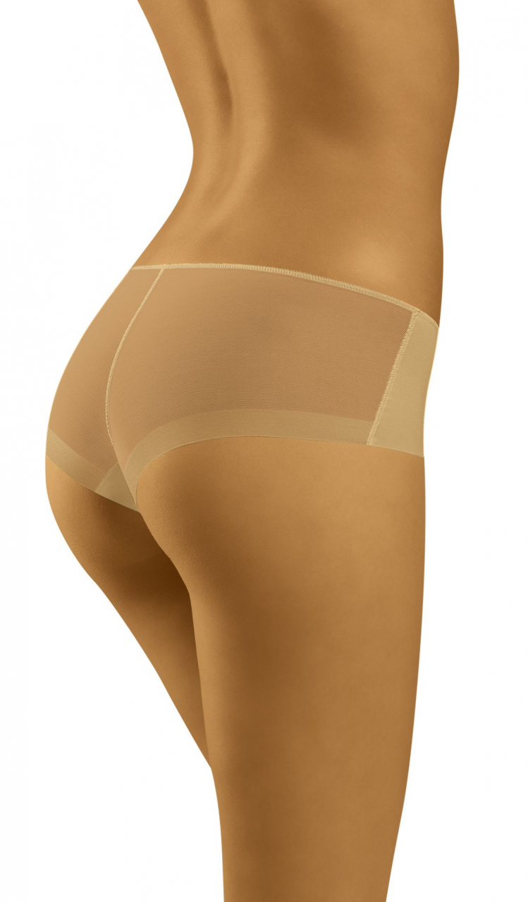 Efektowne shorty z półprześwitującym tyłem. Niby prosto, a jednak z charakterem! Przód gładki, klasyczny. Skład: 83% poliamid, 17% elastan (poliuretan).