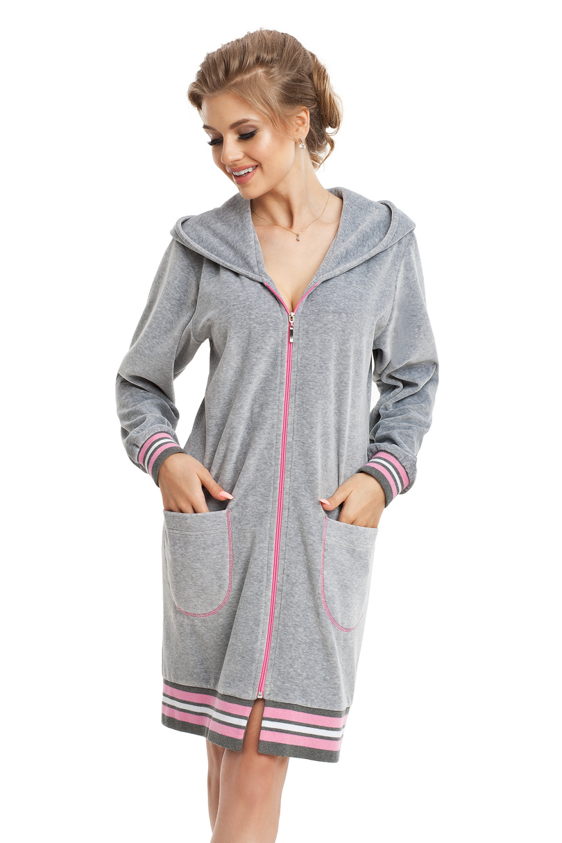 Bawełniany szlafrok damski z kapturem na zamek. skład: 80% bawełna, 20 % poliester