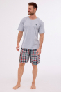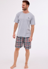 Piżama męska uszyta z wysokiej jakości miękkiej bawełny. Koszulka z krótkim rękawem, na wysokości klatki piersiowej delikatny nadruk. Spodenki krótkie w kratę. Pakowana w pudełko. Skład: 100% Bawełna