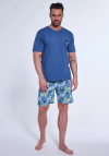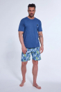 Piżama męska uszyta z wysokiej jakości miękkiej bawełny. Koszulka z krótkim rękawem, na wysokości klatki piersiowej delikatny nadruk. Spodenki krótkie w wzorzyste. Pakowana w pudełko. Skład: bluzka 80% Bawełna, 20% Poliester, spodenki 100% Bawełna