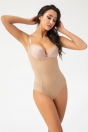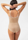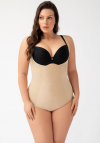 Doskonale modelujące sylwetkę półbody na ramiączkach, umożliwiające założenie dowolnego biustonosza. Wykonane ze sprężystej, mocno ściągającej dzianiny typu lycra zapewniającej dyskretne ukrycie niechcianych wypukłości wyszczuplając sylwetkę od linii bioder po biust. Nieodpinane, regulowane ramiączka, o różnej szerokości w zależności od rozmiaru oraz zapięcie – w kroku – na haftkę trzyrzędową z potrójną regulacją dodatkowo podnoszą komfort noszenia. Skład: 90% poliamid, 7% elastan, 3% poliester.