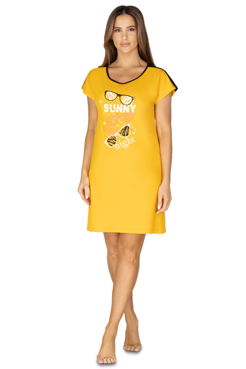 Bawełniana koszula damska w modnych kolorach. Na wysokości klatki piersiowej kolorowy nadruk. Skład: 100% bawełna.